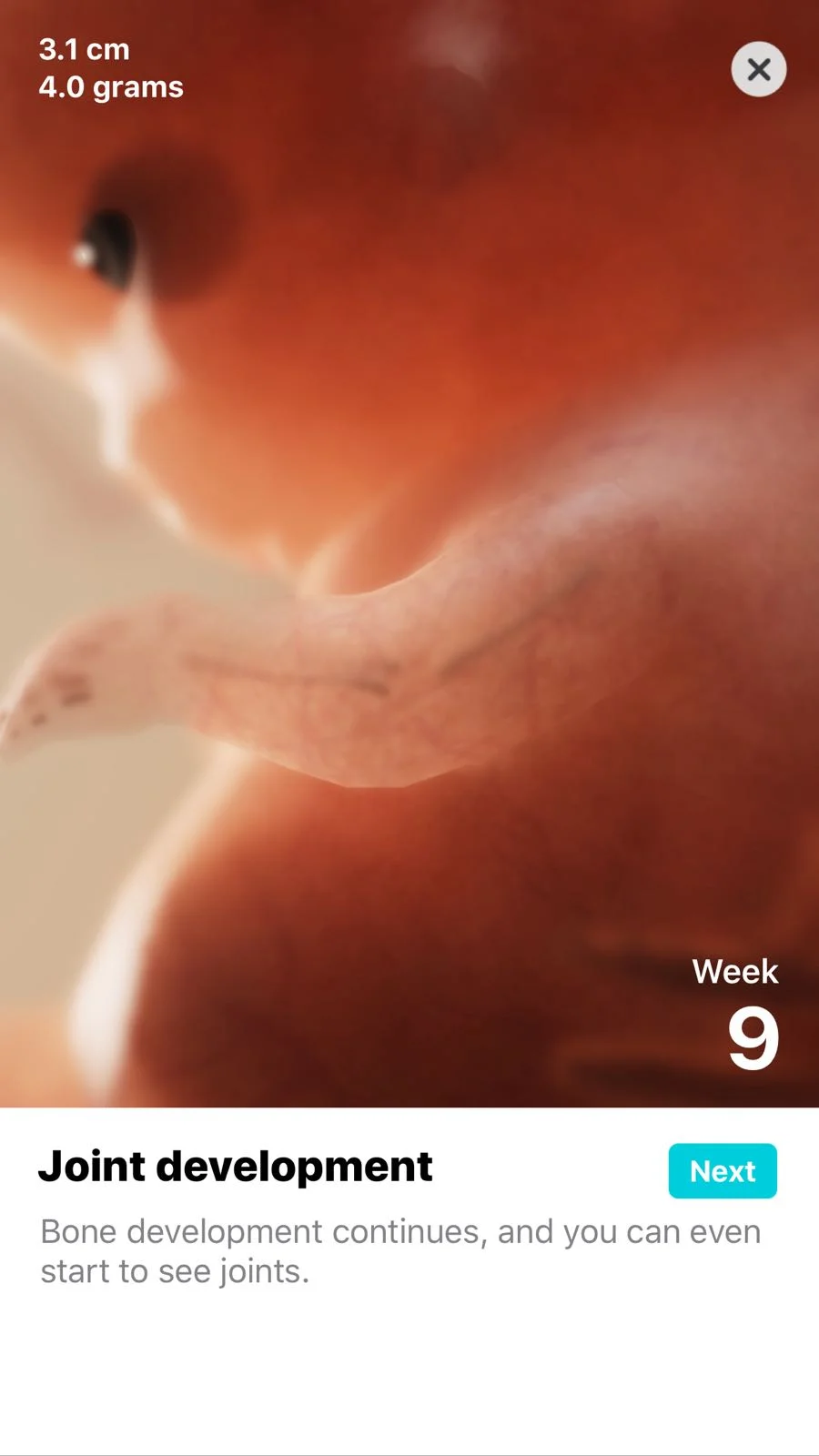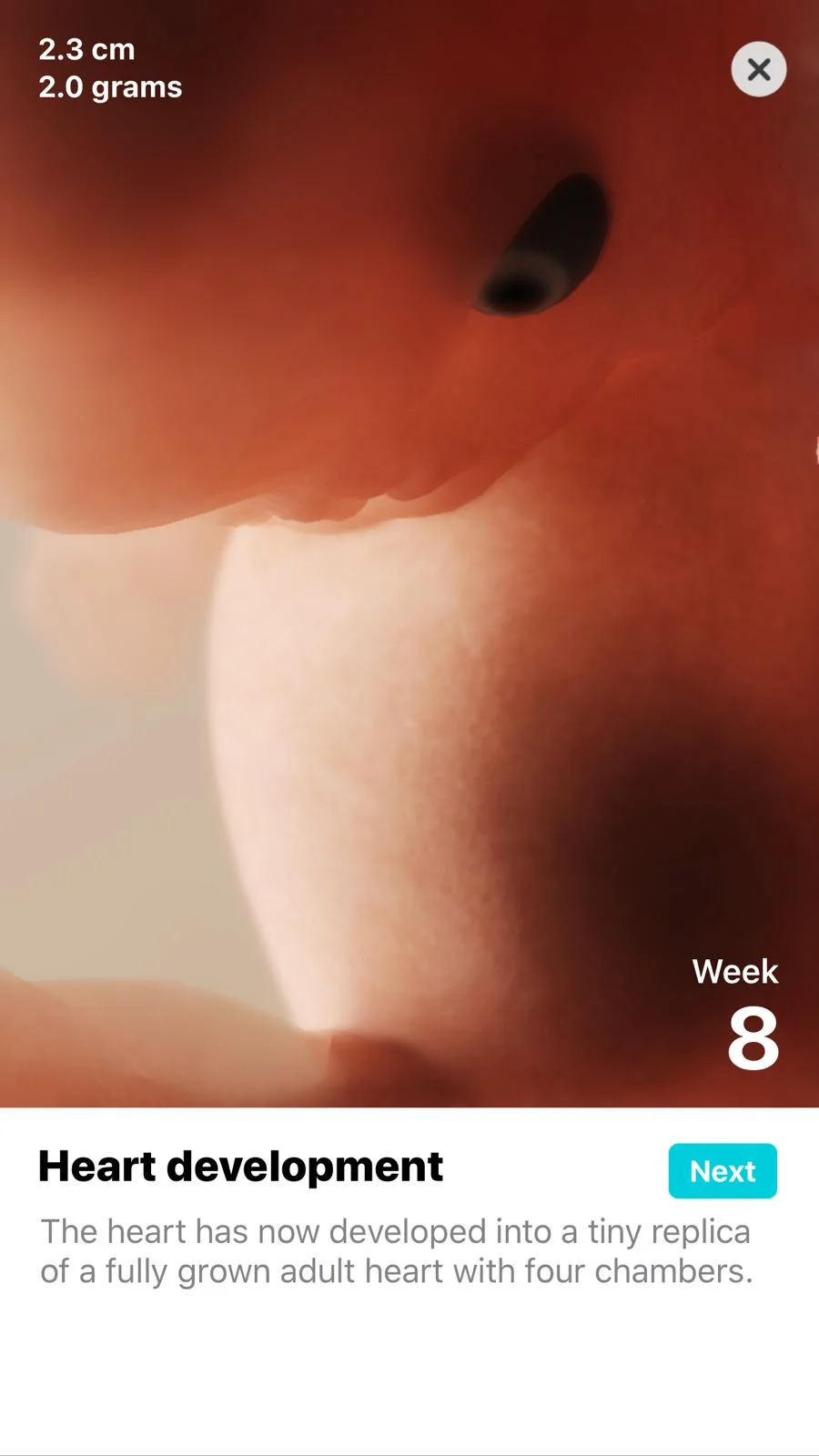 Although important to show what is happening on a surface level, we also wanted to go a step below the surface, and illustrate how the internal skeletal structure and organs are also taking shape over the 40 weeks. We made sure to include extra details such as the changing heart-beat over these earlier weeks, just for that extra little touch!